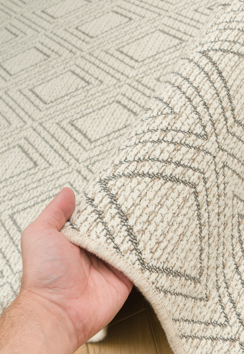 Ковры изготовлены из натуральной шерсти с небольшим добавлением синтетических волокон. Это сочетание обеспечивает высокую износостойкость и устойчивость к интенсивной эксплуатации. Безворсовая структура ковров облегчает уход и делает их удобными в повседневном использовании. Ковры коллекции Alfeo можно смело использовать практически в любом помещении: в гостиной, спальне, кухне-столовой или на балконе. При этом они заметно мягче, чем синтетические циновки — отличное решение на долгие годы.