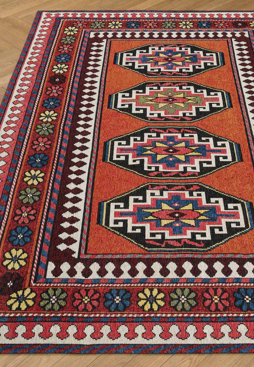 Безворсовые ковры Millenio от модного бельгийского бренда Louis De Poortere выполнены в винтажном стиле. Глядя на ковры, создается ощущение, будто много лет назад они ещё не были такими потёртыми и украшали залы в королевских замках. Яркие цвета неоклассических узоров приглушены выцветшими серо-бежевыми оттенками.