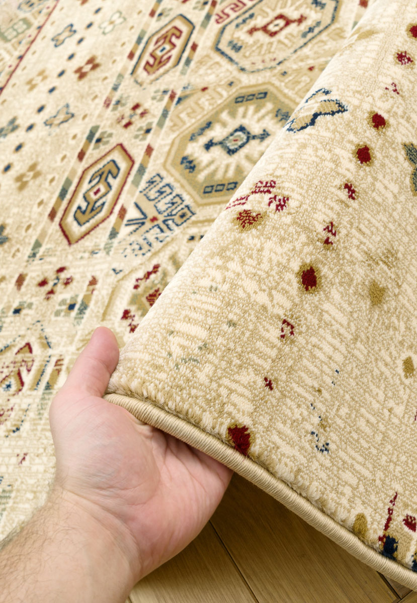 Синтетические нити обладают высокой износоустойчивостью, не выгорают на свету и не выделяют подпушка в процессе эксплуатации. А специальные утяжелители на обратной стороне ковра помогают предотвратить скольжение и препятствуют деформации формы изделия. Обратите внимание, что утяжелители присутствуют только у ковров прямоугольной и квадратной формы.