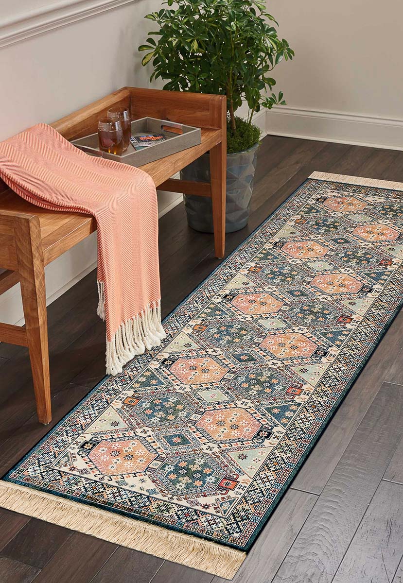 Благодаря содержащейся в бельгийских коврах вискозе они невероятно тонкие - ворс 3 мм высотой. На ощупь такие же мягкие, красиво переливающиеся и блестящие на солнце, как натуральные шёлковые. В зависимости от угла обзора рисунок и оттенок вискозного ковра воспринимается по-разному: против ворса узор выглядит чётким и насыщенным, по ворсу - более светлым и приглушенным. Ковры не потеряют яркости цветов при попадании солнечных лучей и сохранят насыщенные оттенки. В зависимости от размера ковра, рисунок может пропорционально уменьшаться или искажаться (например, в узких дорожках 67*210 см).