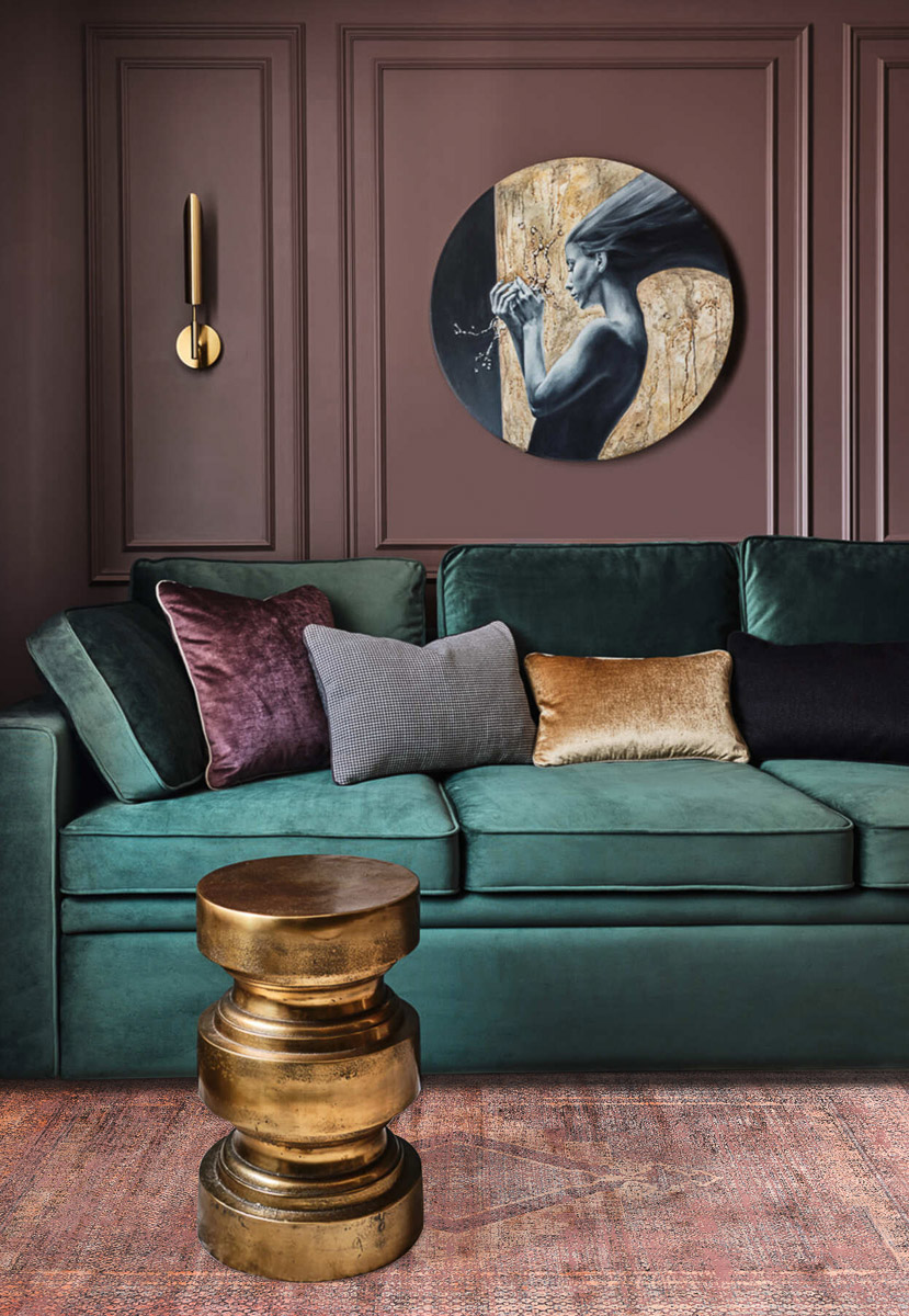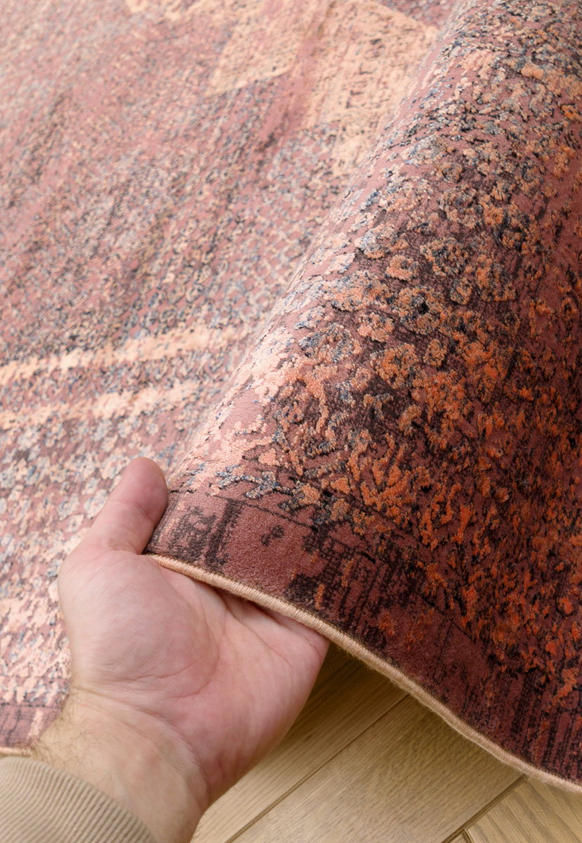 Особого внимания заслуживает мягкий шелковистый ворс из сочетания вискозы и акрила. Он радует приятными тактильными ощущениями и восхищает игрой цвета при искусственном и естественном освещении. В зависимости от угла обзора рисунок и оттенок ковра воспринимаются по-разному: против ворса узор выглядит более чётким и насыщенным, по ворсу — светлым и приглушённым. Впечатляющая плотность плетения 2,5 млн точек/м² в совокупности с небольшой высотой ворса 7 мм обеспечивают высокую износостойкость и долговечность.