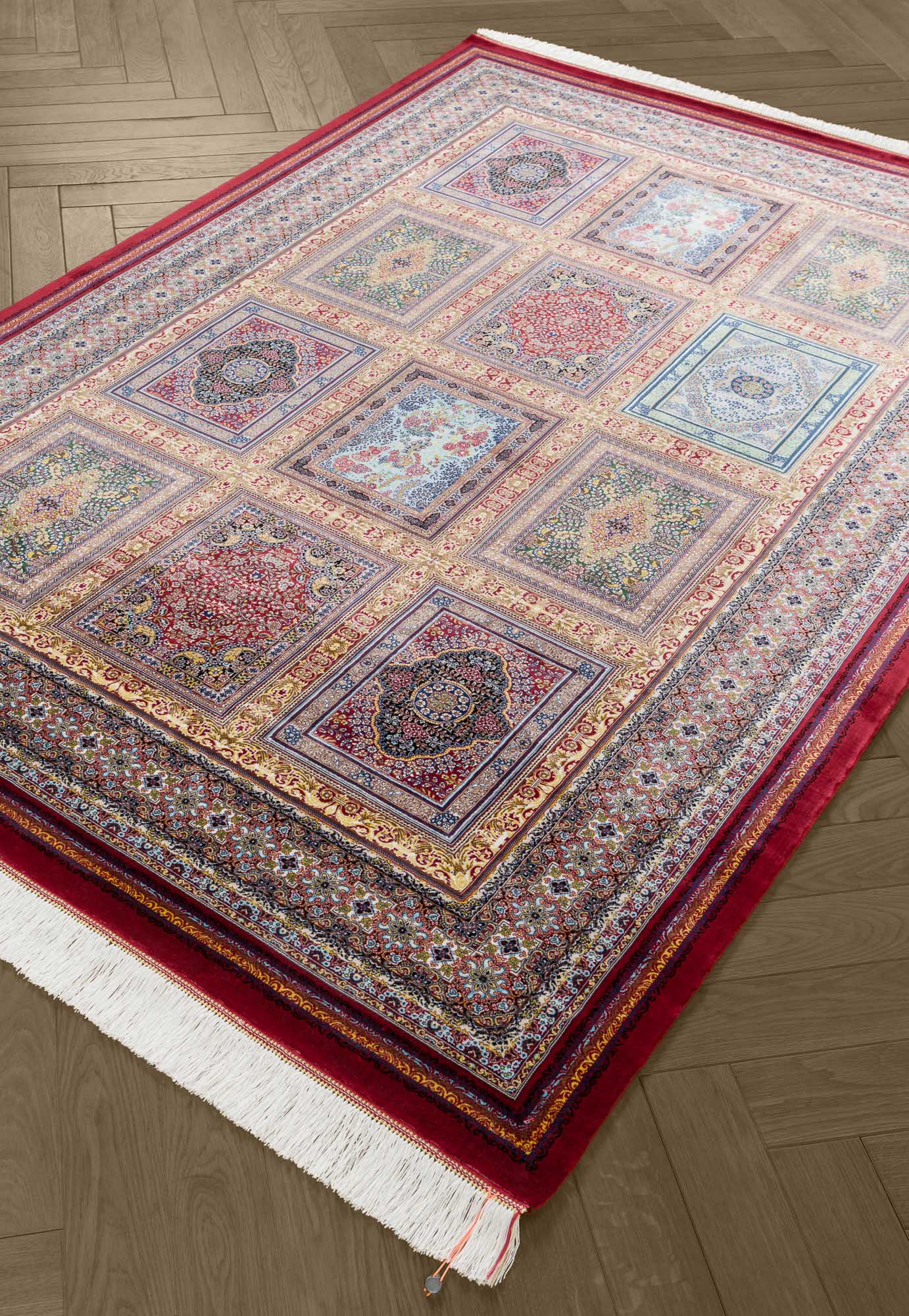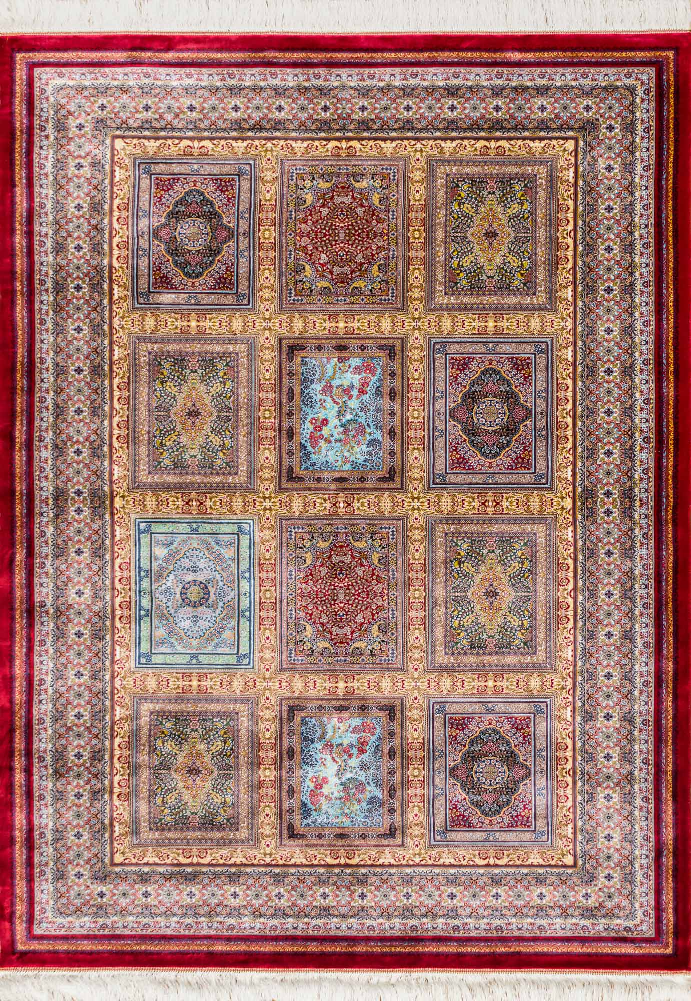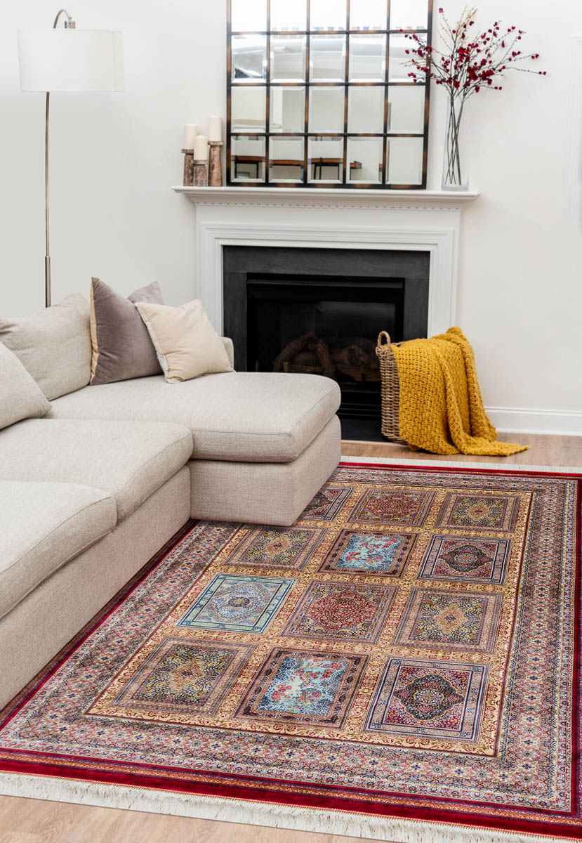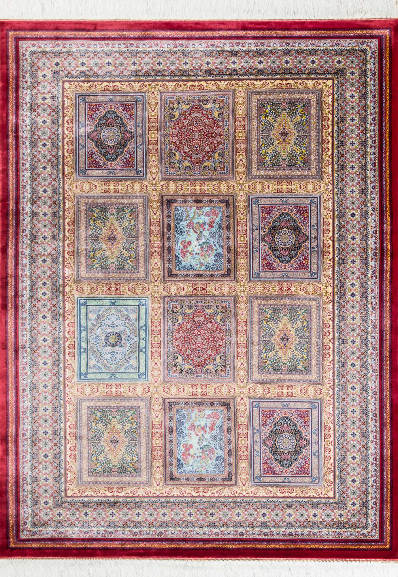 Коллекция классических иранских ковров Ottoman Silk от фабрики Royal Gold Carpet соединила в себе лучшие традиции ковроткачества и грамотный подход при выборе используемых материалов. Их ворс на 100% состоит из модального шёлка (улучшенной разновидности вискозы) и имеет очень высокую плотность 4.6 млн. точек/м2. Тончайшие шелковистые нити образуют прочную структуру с чёткими, идеально прорисованными узорами.