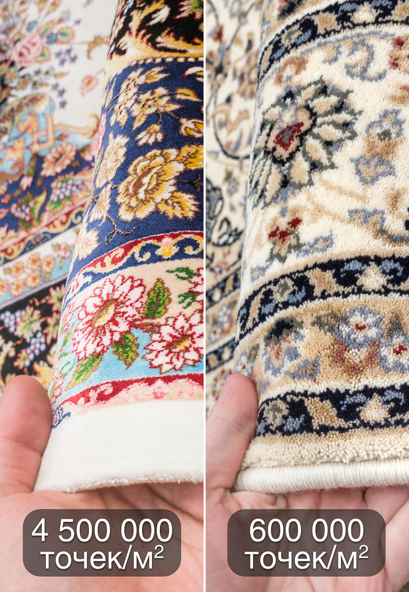 Поражающая детализация рисунка заслуживает отдельного внимания, также как и тактильные ощущения от прикосновений. Невероятно мягкий ворс красиво переливается на свету, создавая эффект движения, а сделанная вручную оригинальная бахрома из натурального шёлка добавляет им благородства и элегантности. В зависимости от угла обзора рисунок и оттенок вискозного ковра воспринимается по-разному: против ворса узор выглядит чётким и насыщенным, по ворсу - более светлым и приглушенным. Отличное решение для гостиной, спальни или кабинета на долгие годы!