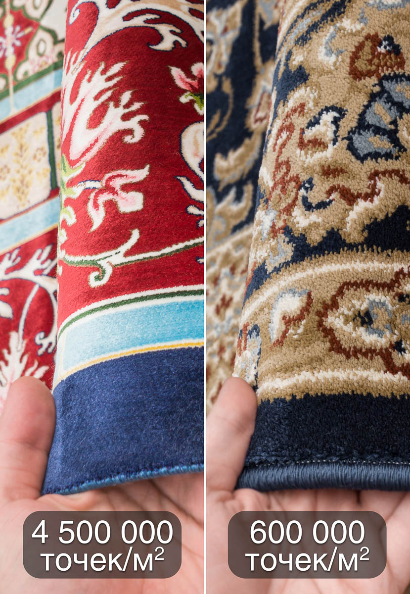 Поражающая детализация рисунка заслуживает отдельного внимания, также как и тактильные ощущения от прикосновений. Невероятно мягкий ворс красиво переливается на свету, создавая эффект движения, а сделанная вручную оригинальная бахрома из натурального шёлка добавляет им благородства и элегантности. В зависимости от угла обзора рисунок и оттенок вискозного ковра воспринимается по-разному: против ворса узор выглядит чётким и насыщенным, по ворсу - более светлым и приглушенным. Отличное решение для гостиной, спальни или кабинета на долгие годы!
