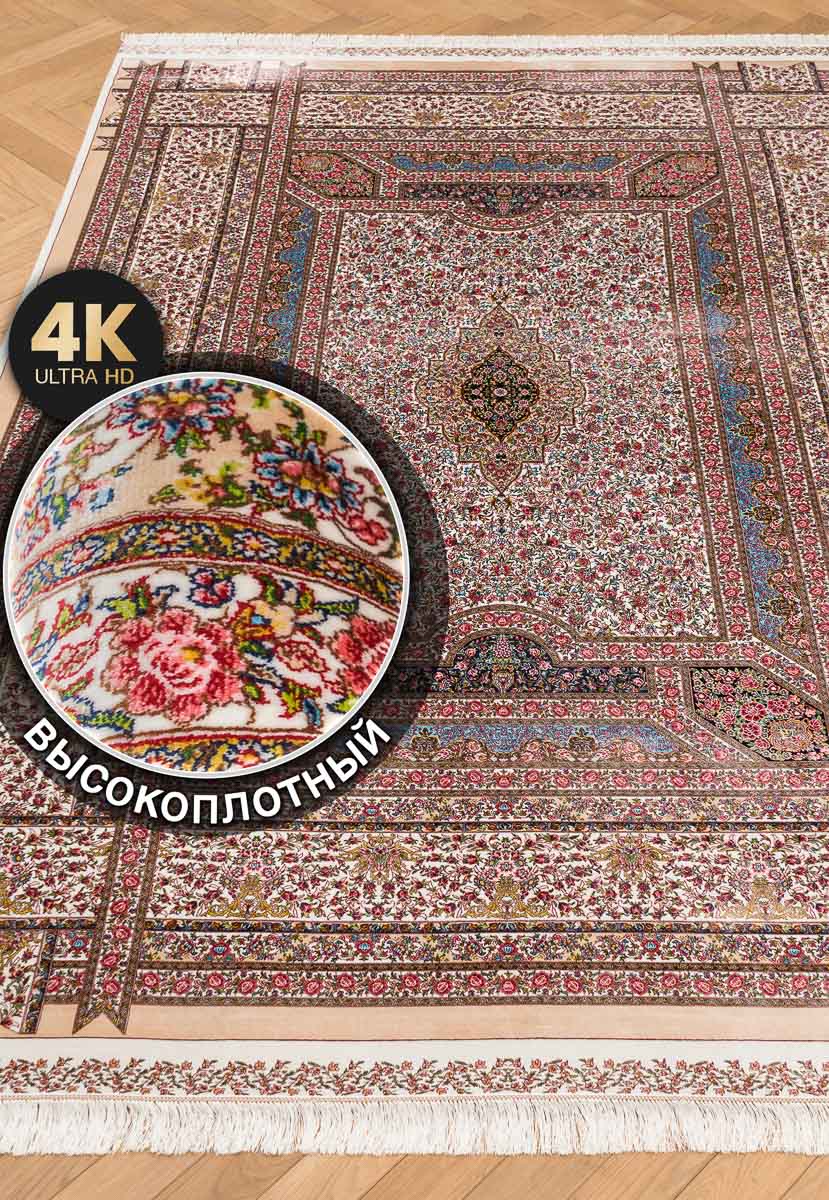 Коллекция классических иранских ковров Ottoman Silk от фабрики Royal Gold Carpet соединила в себе лучшие традиции ковроткачества и грамотный подход при выборе используемых материалов. Их ворс на 100% состоит из модального шёлка (улучшенной разновидности вискозы) и имеет очень высокую плотность 4.6 млн. точек/м2. Тончайшие шелковистые нити образуют прочную структуру с чёткими, идеально прорисованными узорами.