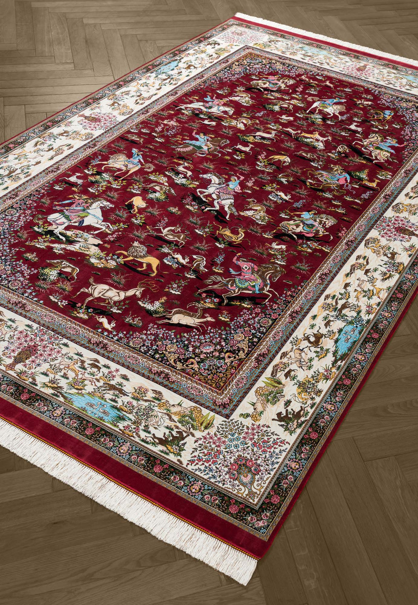 Коллекция классических иранских ковров Ottoman Silk от фабрики Royal Gold Carpet соединила в себе лучшие традиции ковроткачества и грамотный подход при выборе используемых материалов. Их ворс на 100% состоит из модального шёлка (улучшенной разновидности вискозы) и имеет очень высокую плотность 4.6 млн. точек/м2. Тончайшие шелковистые нити образуют прочную структуру с чёткими, идеально прорисованными узорами.