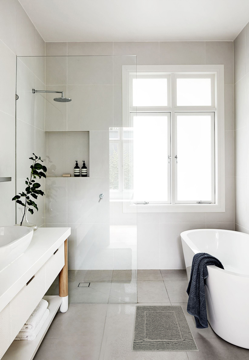 коврик для ванной в интерьере Aura Light Grey квадрат