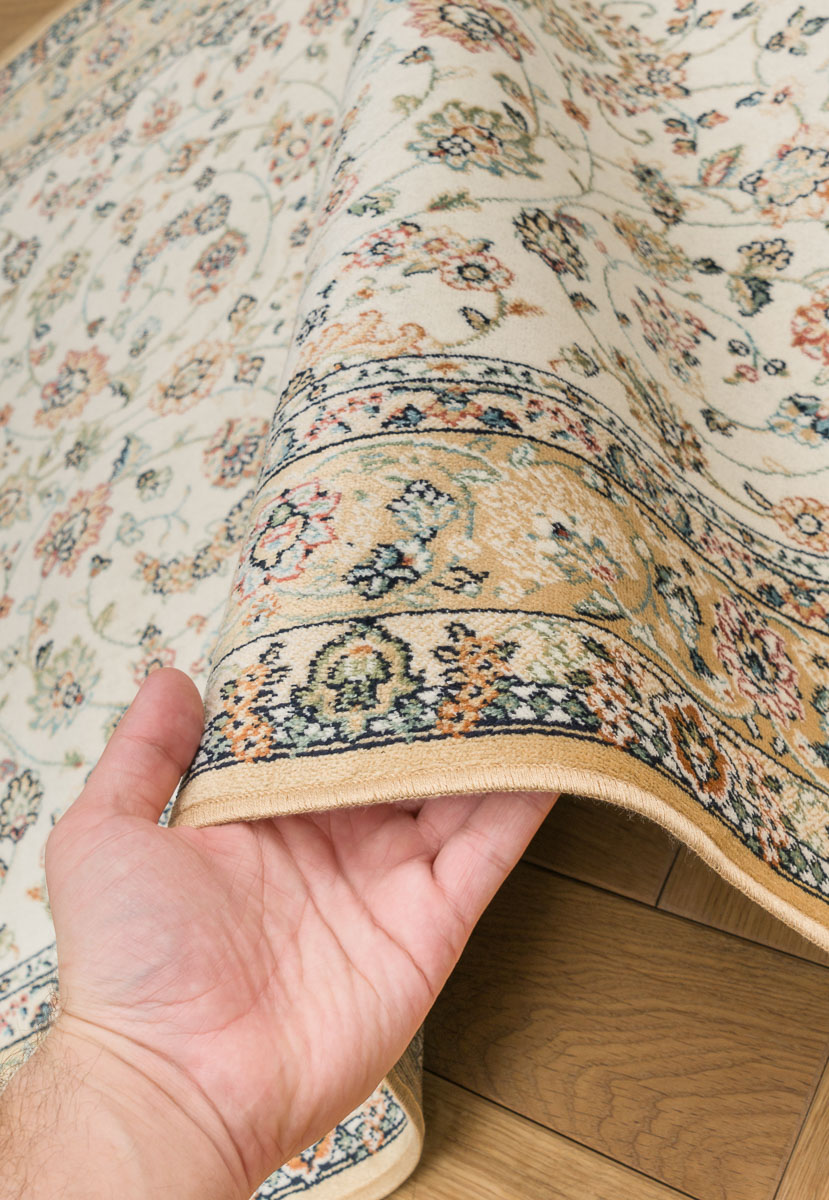 Благодаря содержащейся в бельгийских коврах вискозе они невероятно тонкие - ворс 3 мм высотой. На ощупь такие же мягкие, красиво переливающиеся и блестящие на солнце, как натуральные шёлковые. В зависимости от угла обзора рисунок и оттенок вискозного ковра воспринимается по-разному: против ворса узор выглядит чётким и насыщенным, по ворсу - более светлым и приглушенным. Ковры не потеряют яркости цветов при попадании солнечных лучей и сохранят насыщенные оттенки. В зависимости от размера ковра, рисунок может пропорционально уменьшаться или искажаться (например, в узких дорожках 67*210 см).